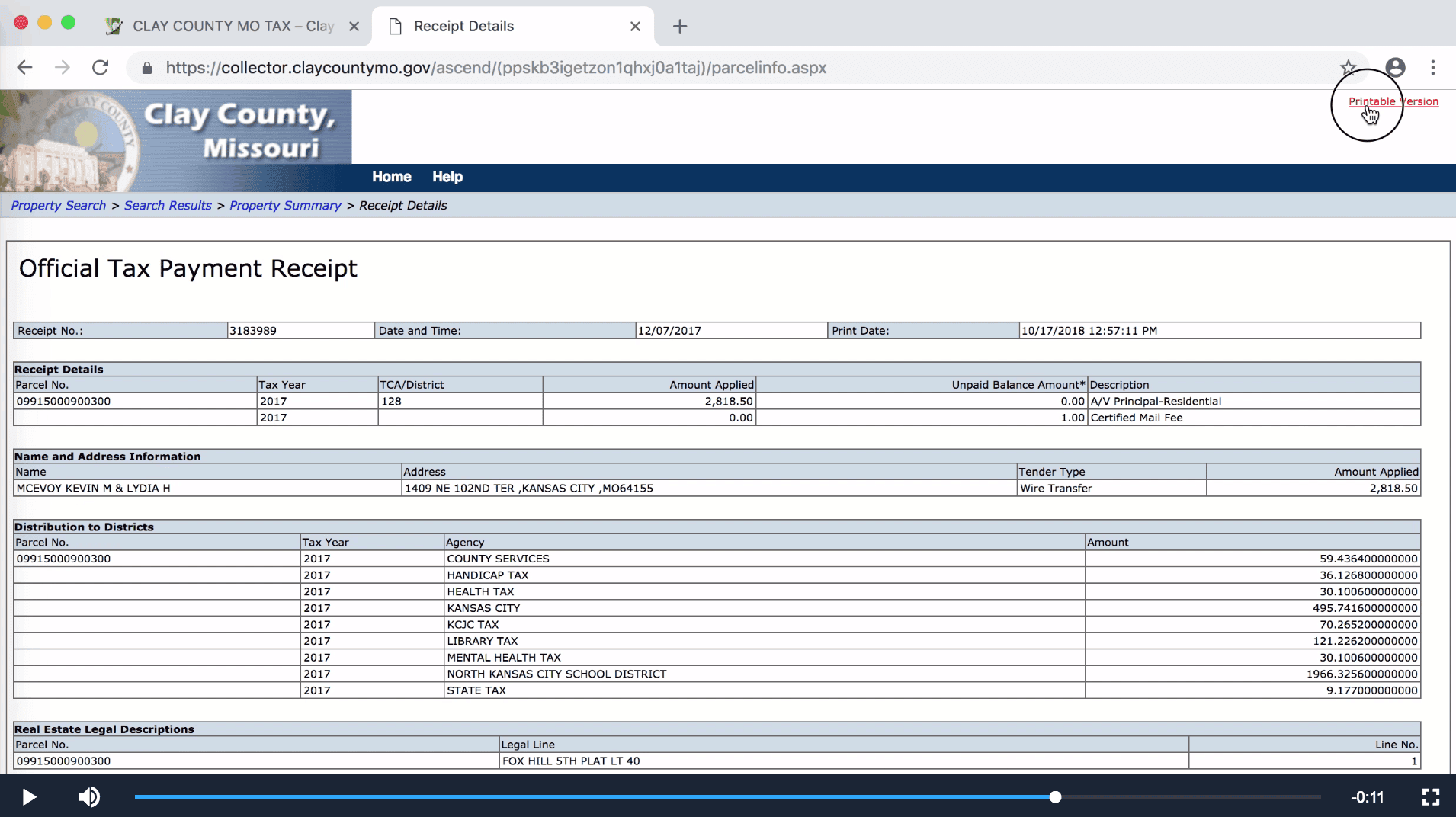 Once you click on the blue parcel number link, you will be taken to the tax bill for that parcel. On this page, you can:
